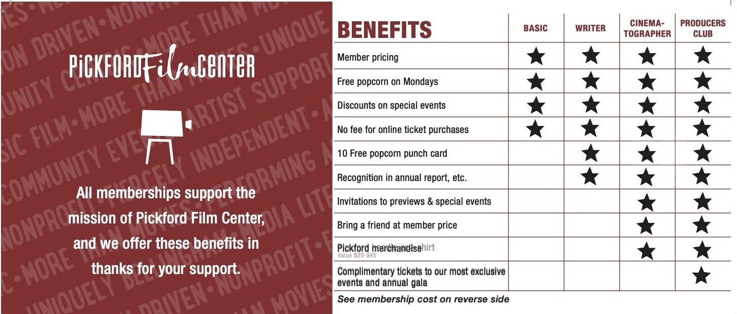 PFC offers a variety of membership levels. Please consider upgrading to Producers Club, Cinematographer or Writer and, in recognition for your generous contribution you will receive an abundance of additional benefits. Senior Memberships are available to those 58 and older.