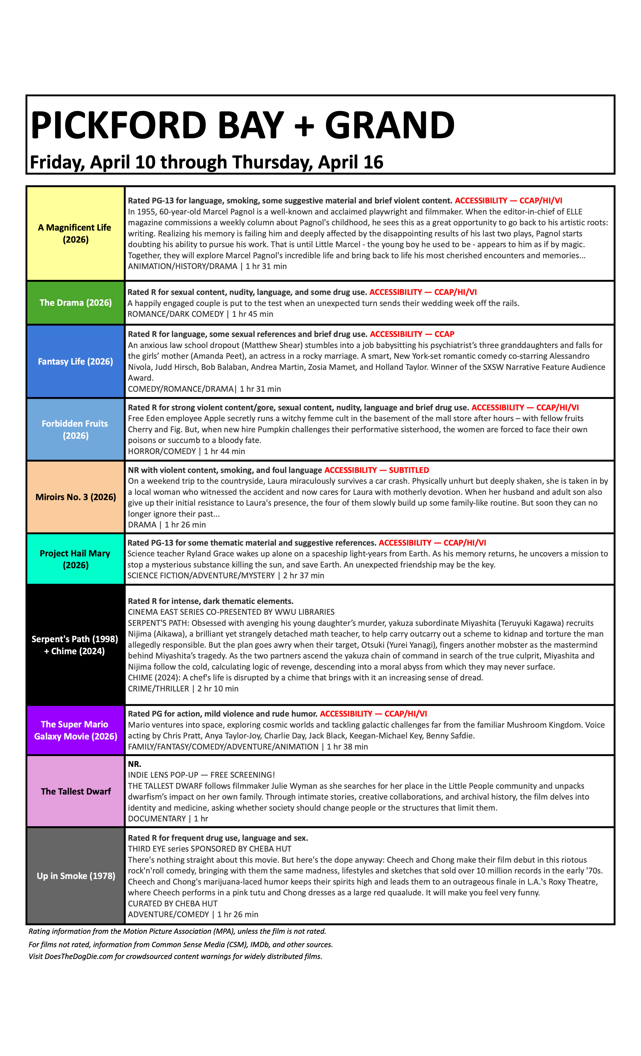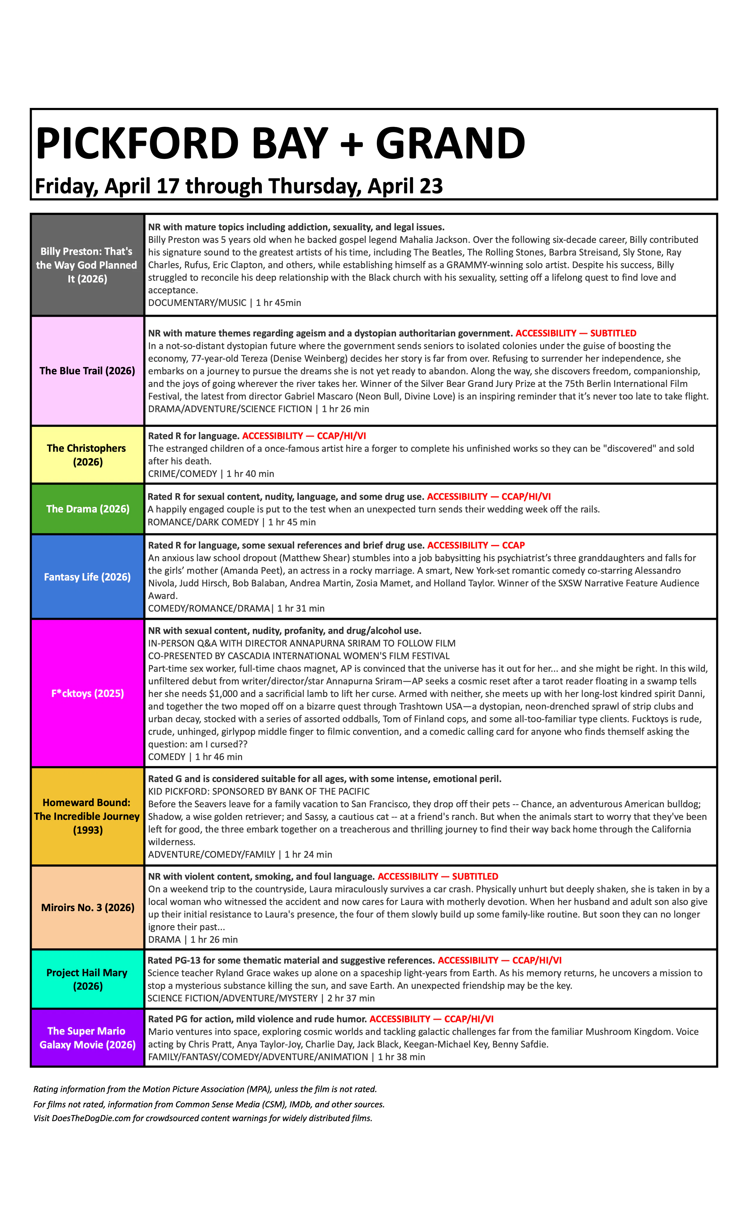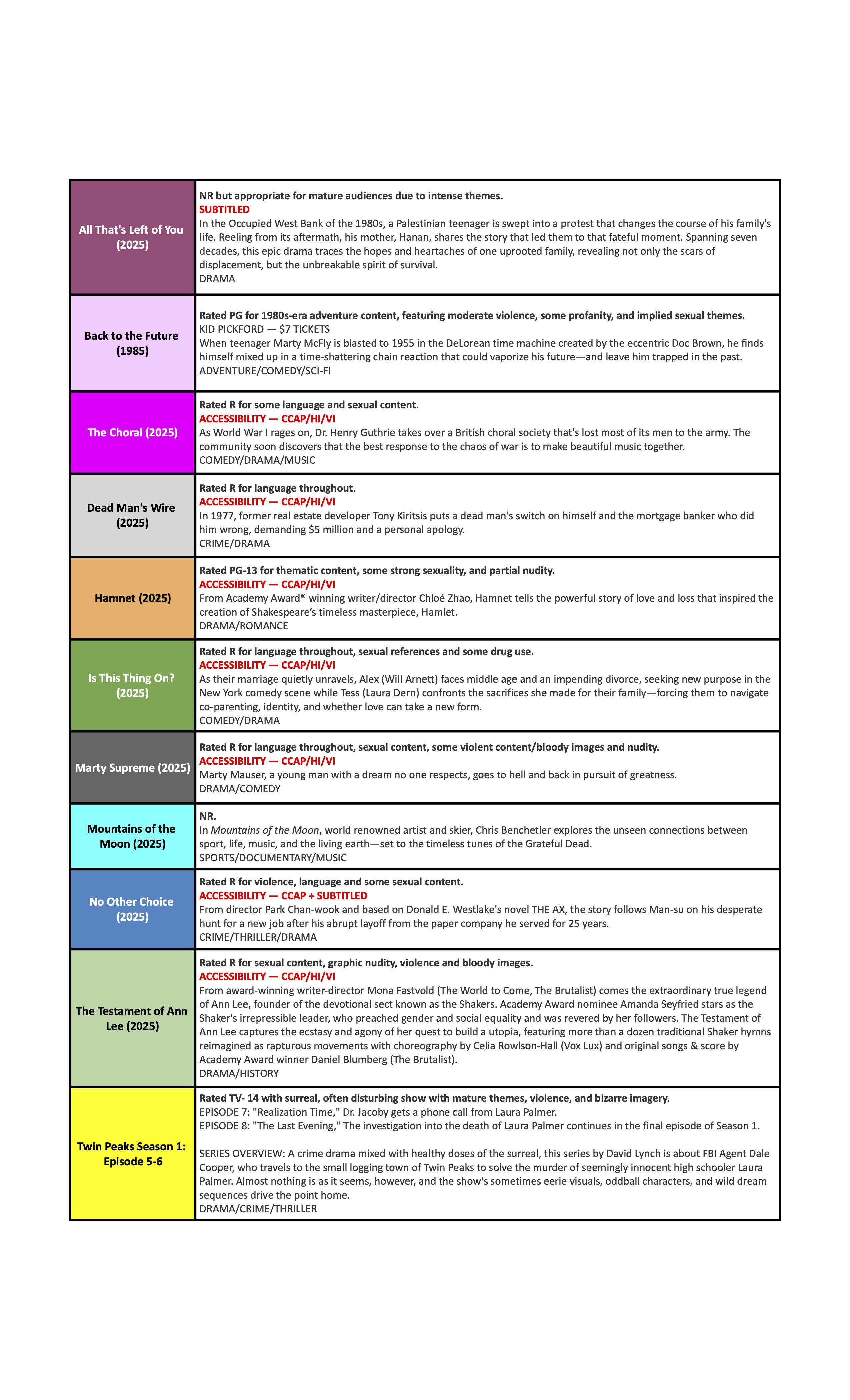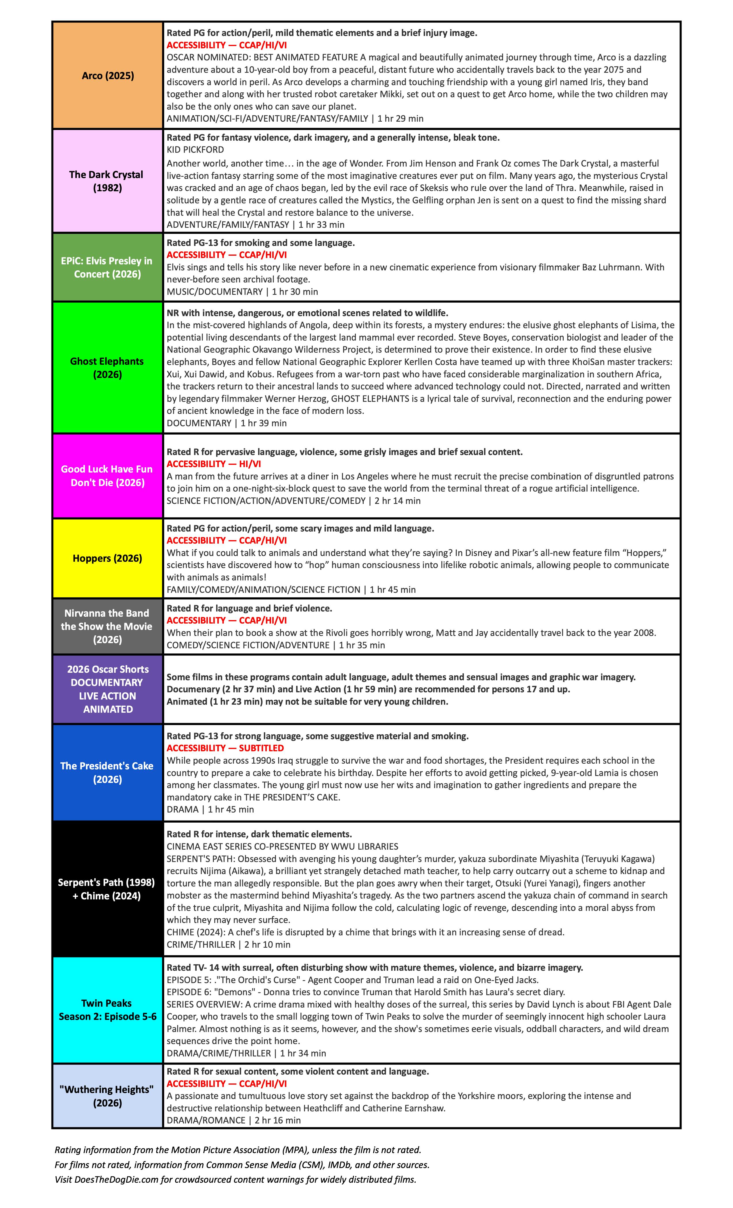 Closed captioning and assistive listening devices are available at the box office.