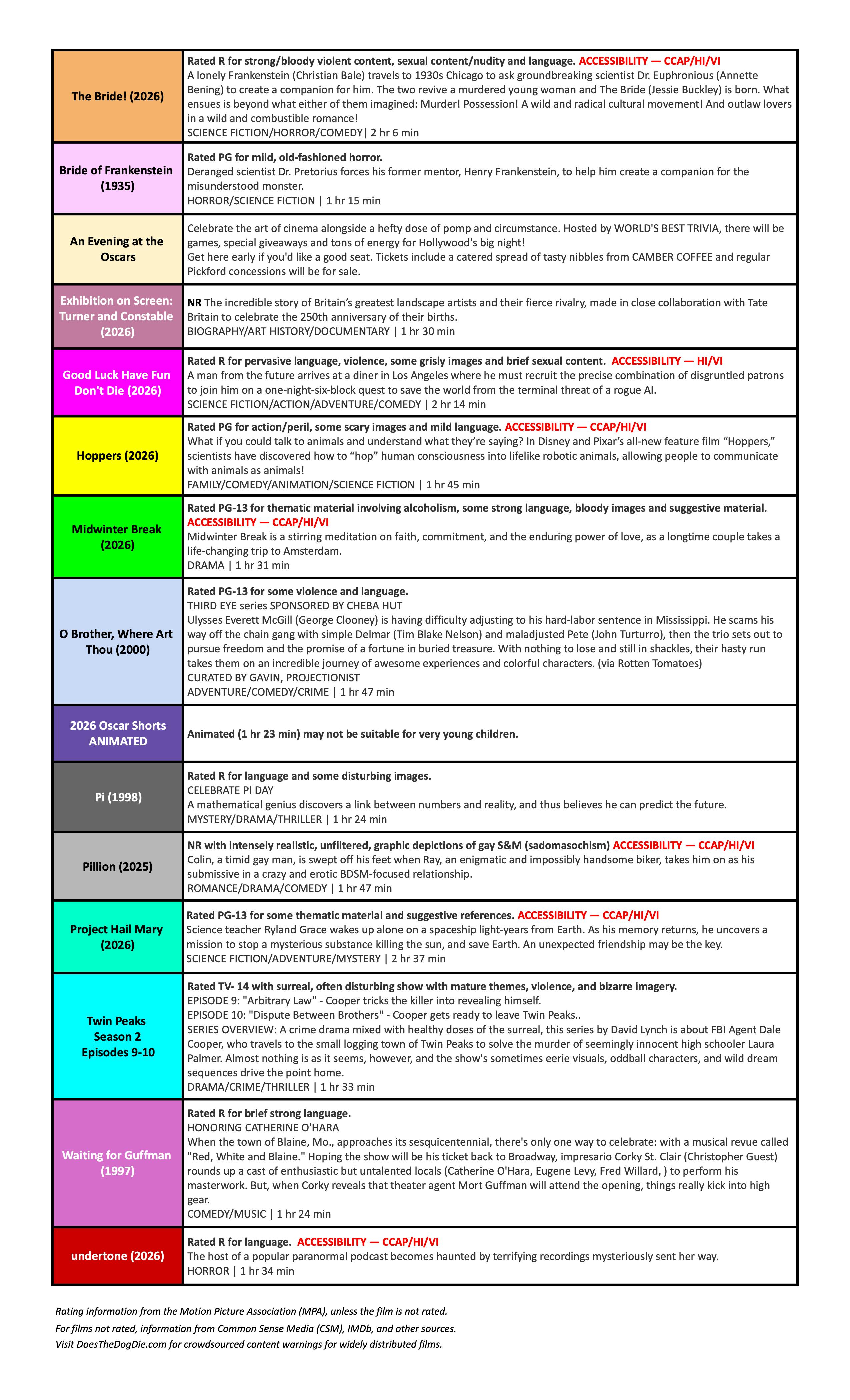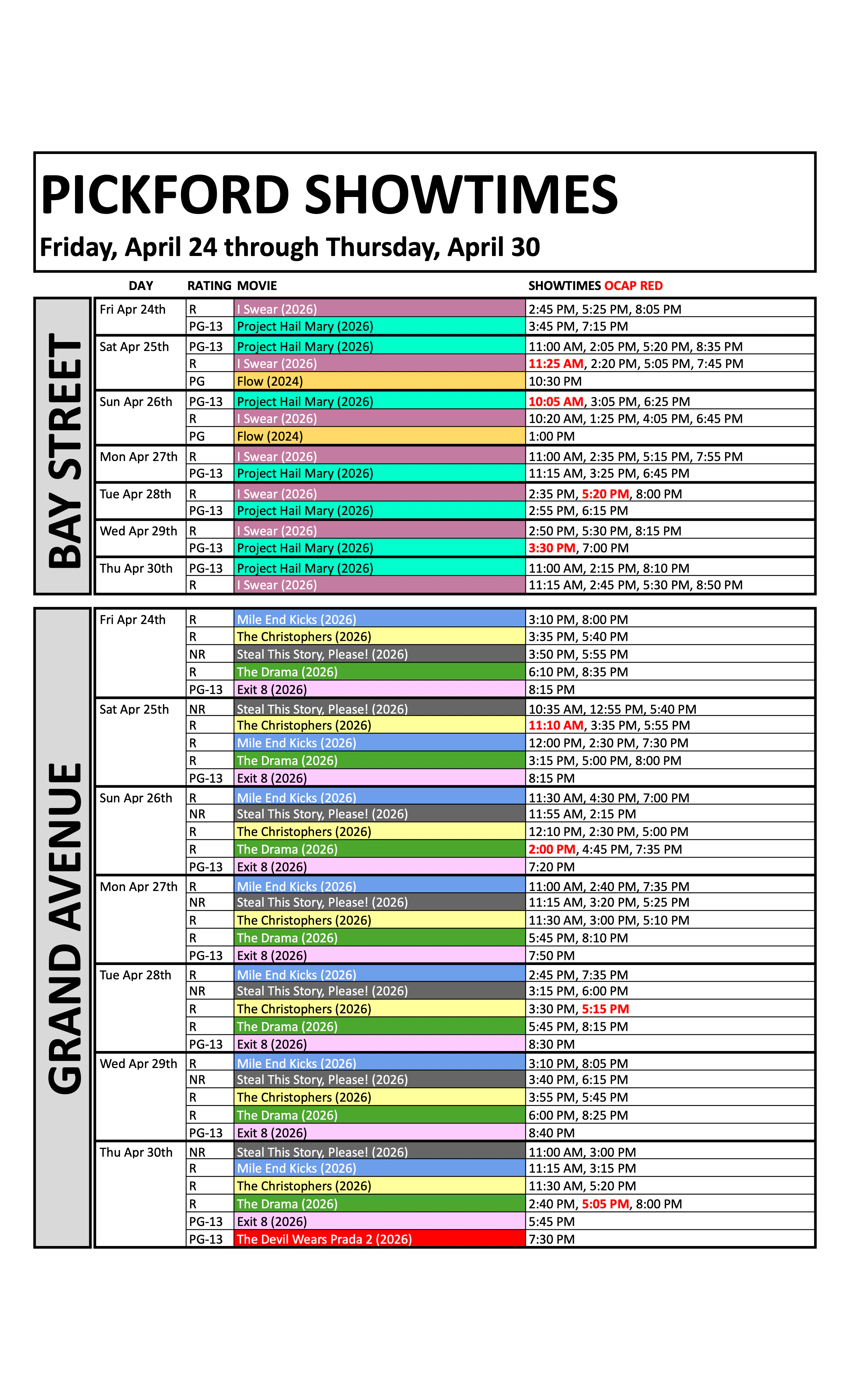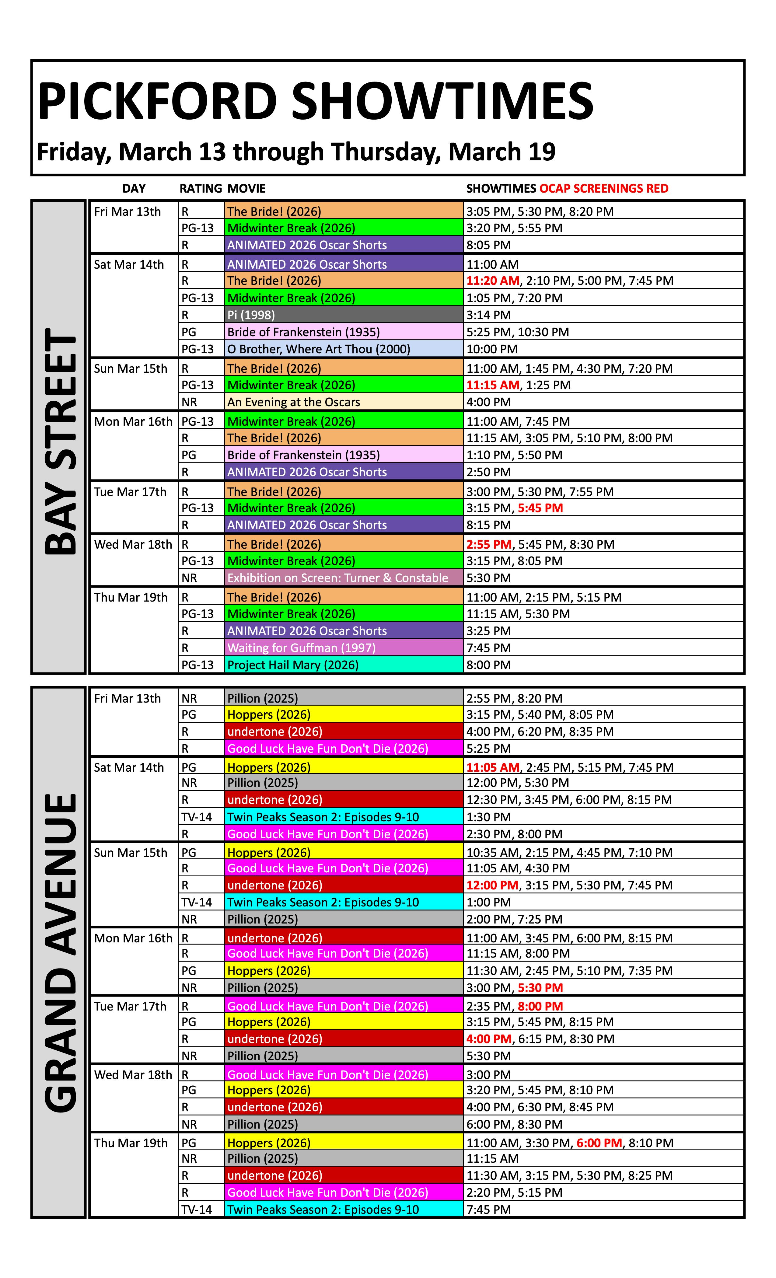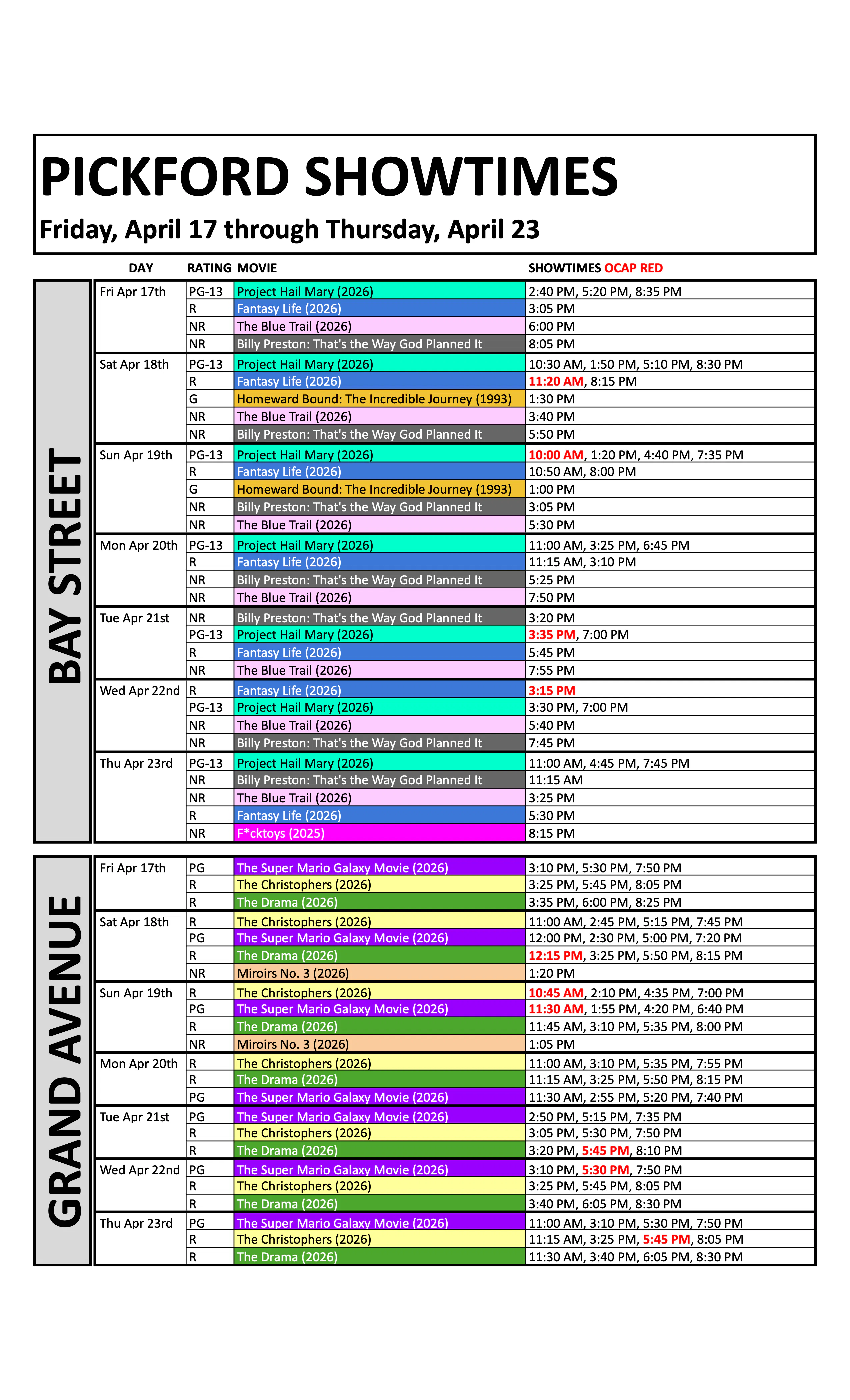 Weekly Showtimes