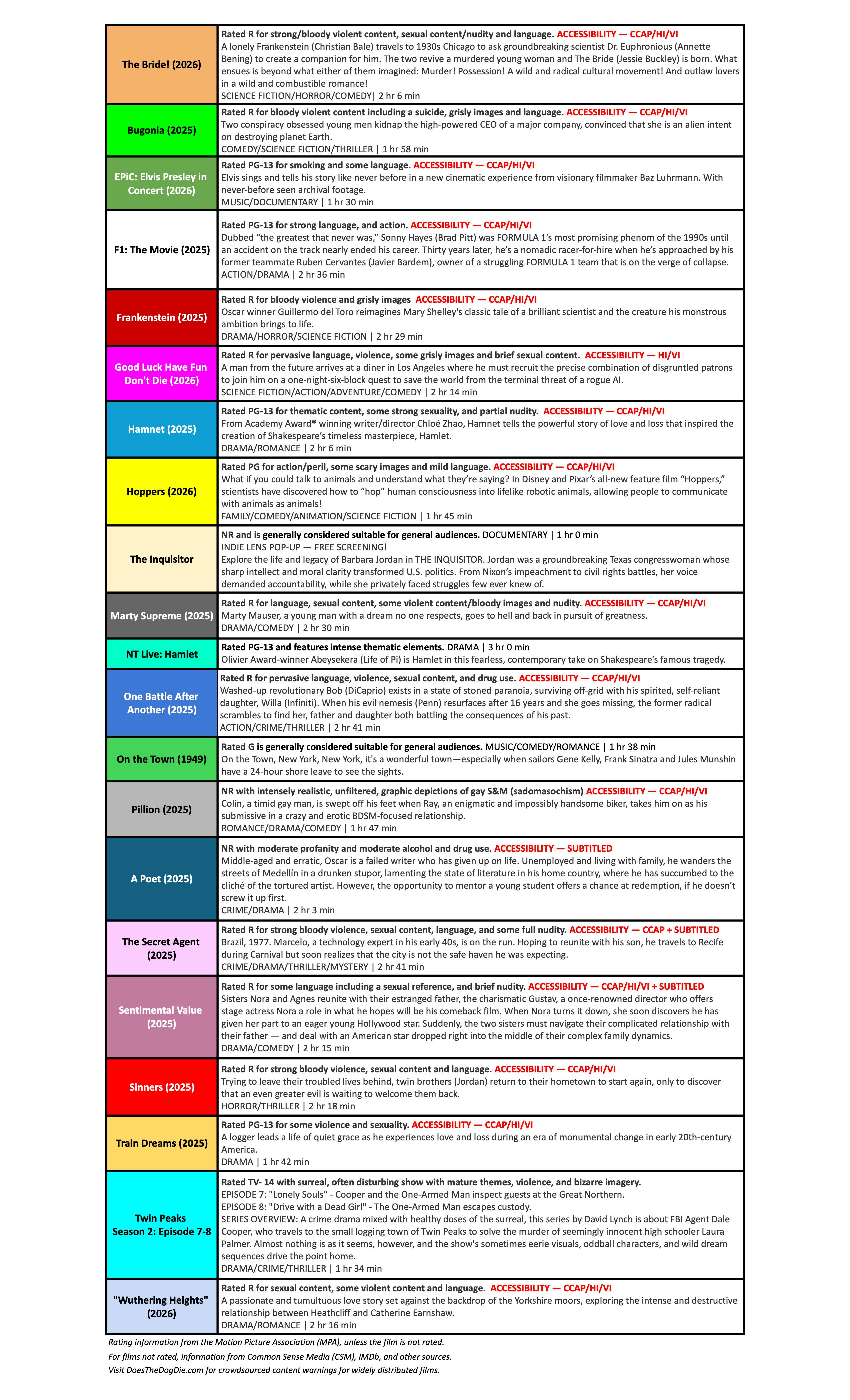 All theaters are ADA accessible with wheelchair seating.