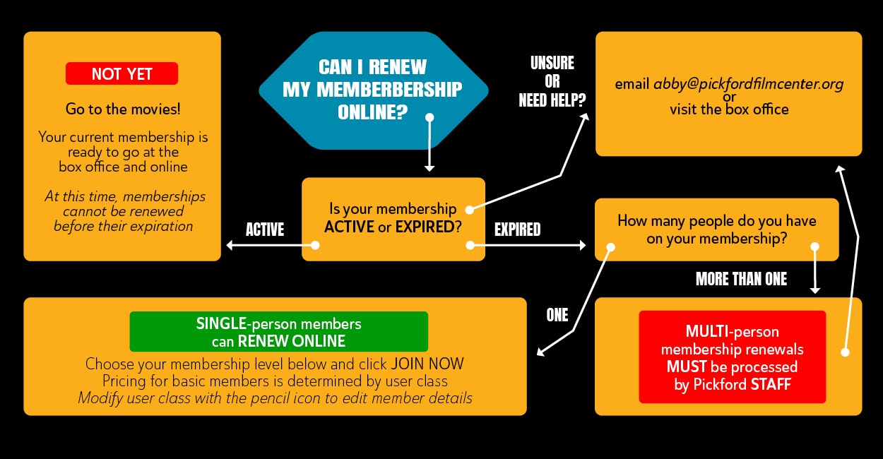 Email Abby Caram, Box Office Manger at abby@pickfordfilmcenter.org
